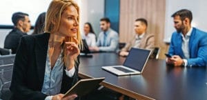 Attractive businesswoman using digital tablet in office