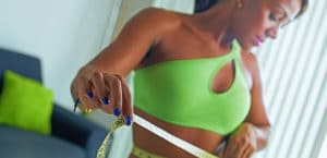 Black Woman Measuring Waist With Yellow Tape