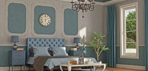 Elegant blue and gray master bedroom