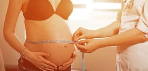 Friendly female medicine doctor holding centimeter tape and list