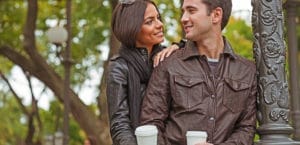 Happy couple flirting outdoors