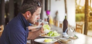 Man enjoying meal at vietnamese restaurant